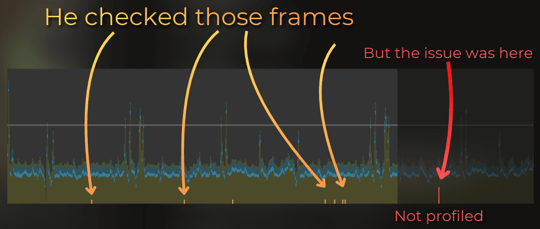 Rowan launched a profiler and measured over 500 different frames. He just quickly skimmed through 30 different frames and noticed that the performance of the new feature is stable.