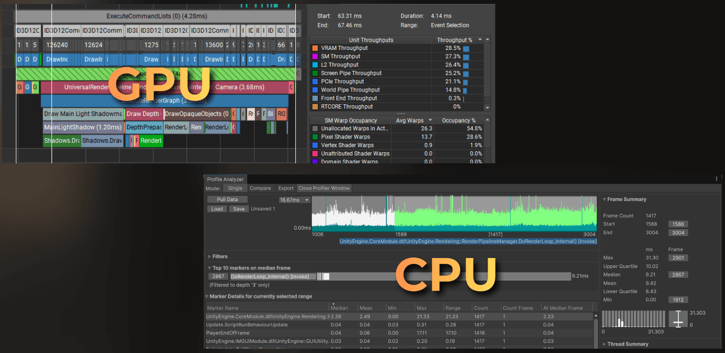 Now, let's compare the GPU using more professional tools, because GPU timings in Unity are usually not very precise.