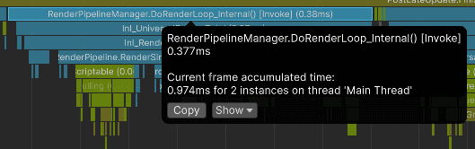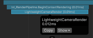 For example, the profiler sample below represents the camera overhead for rendering a small depth texture with only 3 objects.