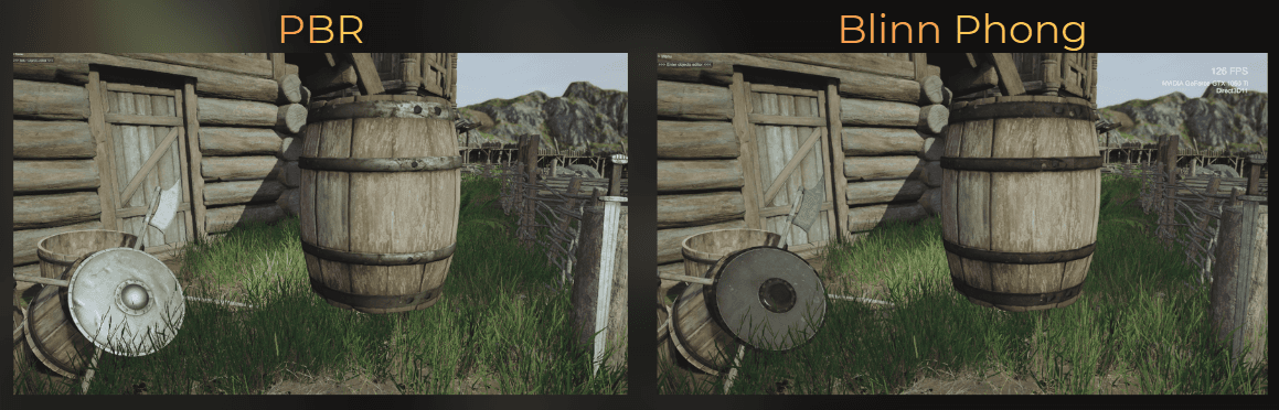 Now I see another issue: metallic objects look very different. It is about the sharpness, or pointiness, of the specular reflection: