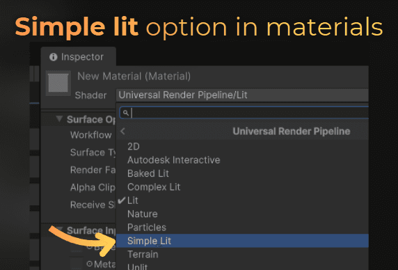 But in the URP shaders, we do have access to a shader with a simpler lighting model.
