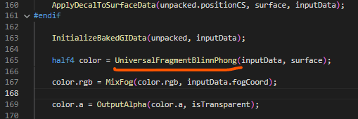 To use this simplified lighting, I can just replace UniversalFragmentPBR with UniversalFragmentBlinnPhong, and in theory it should work, right? Let's do it!