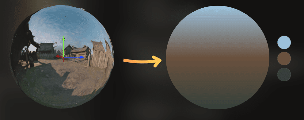 I noticed that most of those reflection probes use similar colors. Because of that, I could approximate the probe colors with a vertical gradient using three colors: