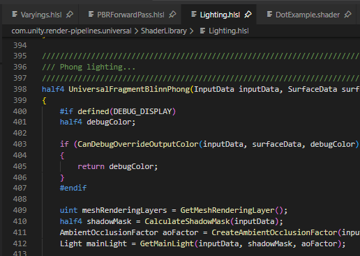 Notice that this is a lighting library that contains a few lighting models. When I scroll down, I can find that there is also Blinn-Phong lighting there, just waiting to be used.