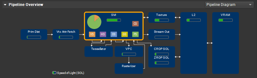 I also ensured that the opaque objects are bottlenecked by the fragment shader performance, so every fragment shader optimization should be visible as shorter render time and increased throughput of other units than SM.