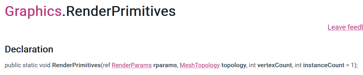 Notice that both APIs don't use any mesh. Instead, they require you to provide MeshTopology, vertex count, and instance count.