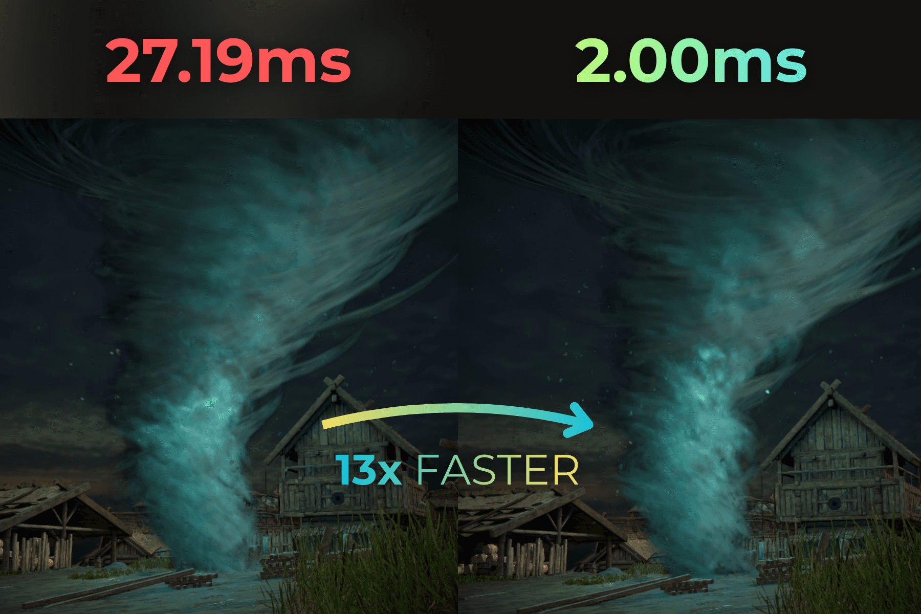 Oh wow, it is MUCH slower than I expected... 27.19ms to render this tornado... For 60 FPS I need the whole frame under 16.6ms, so 27ms just for the tornado is way too much.