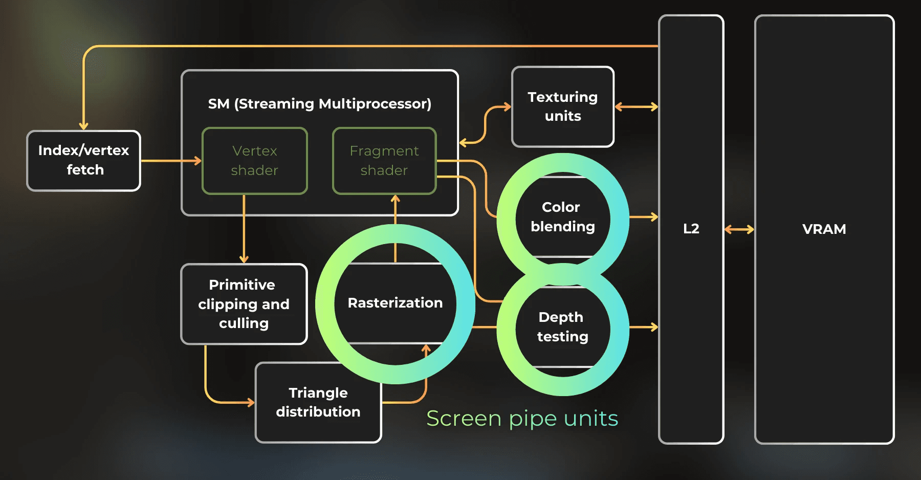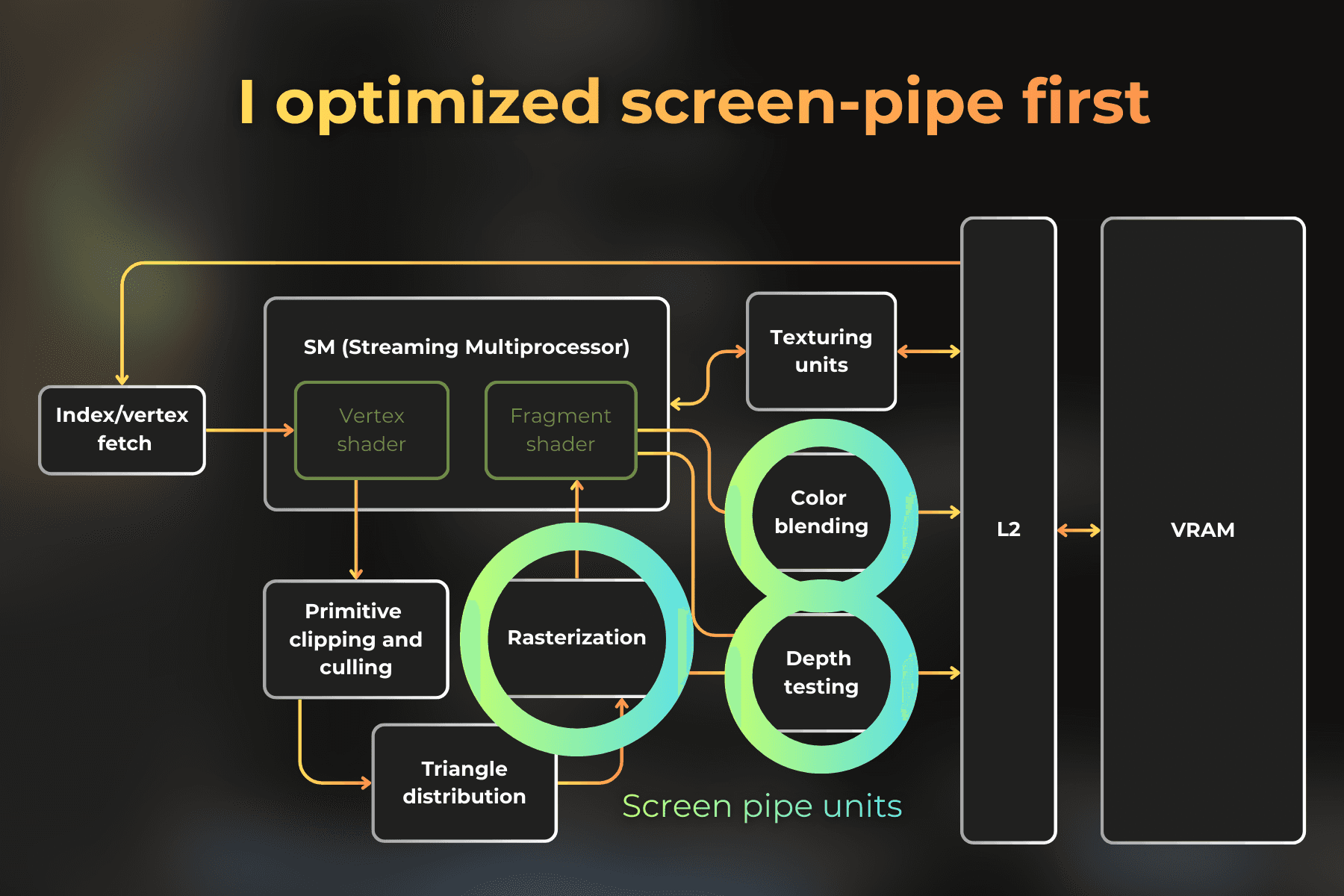 Now, the highest throughput is on a screen pipe, and it is depth testing, color blending and rasterization. This is what I need to optimize first: