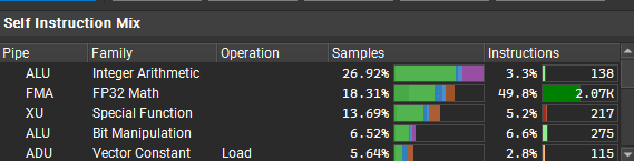 Things are getting harder to optimize. The fragment shader still takes the most time, and there are a lot of FP32 and integer instructions.